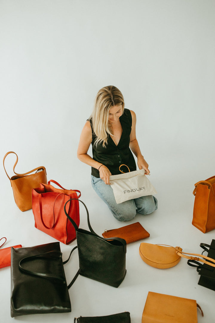 Andrea founded Findlay after falling in love with leather for its strength and ability to become more beautiful with time and use. She struggled to find a polished leather bag that could transition throughout her busy day and make a subtle statement about her personal style and ethics. So she tried her hand at designing her dream tote and Findlay was born. She believes in creating classic and timeless pieces that are thoughtfully designed and made with responsibly sourced materials.